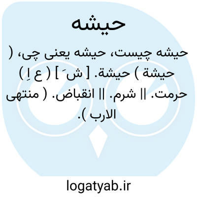 ( حیشة ) حیشة. [ ش َ ] ( ع اِ ) حرمت. || شرم. || انقباض. ( منتهی الارب ).