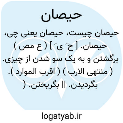 حیصان. [ ح َ ی َ ] ( ع مص ) برگشتن و به یک سو شدن از چیزی. ( منتهی الارب ) ( اقرب الموارد ). بگردیدن. || بگریختن. ( المصادر زوزنی ). رجوع به حیص شود.