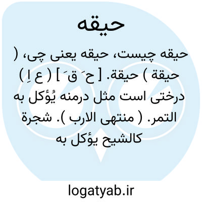 ( حیقة ) حیقة. [ ح َ ق َ ] ( ع اِ ) درختی است مثل درمنه یُؤکل به التمر. ( منتهی الارب ). شجرة کالشیح یؤکل به التمر. ( اقرب الموارد ).