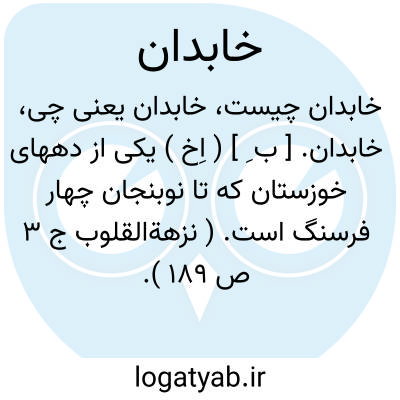 خابدان. [ ب ِ ] ( اِخ ) یکی از دههای خوزستان که تا نوبنجان چهار فرسنگ است. ( نزهةالقلوب ج 3 ص 189 ).