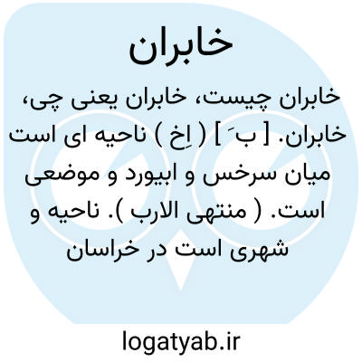 خابران. [ ب َ ] ( اِخ ) ناحیه ای است میان سرخس و ابیورد و موضعی است. ( منتهی الارب ). ناحیه و شهری است در خراسان که دارای قرای چند است بین سرخس و ابیورد و ازقرای آن میهنه است که شهری بزرگ بوده و اکنون غالب آن خراب شده. ( معجم البلدان ). رجوع به خاوران شود.