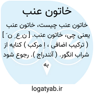 خاتون عنب. [ ن ِع ِ ن َ ] ( ترکیب اضافی، اِ مرکب ) کنایه از شراب انگور. ( آنندراج ). رجوع شود به مجموعه مترادفات ص 224.