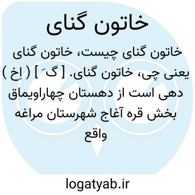 خاتون گنای. [ گ َ ] ( اِخ ) دهی است از دهستان چهاراویماق بخش قره آغاج شهرستان مراغه واقع در 24 هزارگزی جنوب خاوری قره آغاج و 53 هزارگزی شمال خاوری ارابه رو شاهین دژ به تکاب. محلی است کوهستانی و معتدل و مالاریائی سکنه آنجا 261 تن. مذهب اهالی شیعه و زبان آنها ترکی است.آب آنجا از رودخانه، محصولات آنجا غلات و نخود است. شغل اهالی زراعت و صنایع دستی و جاجیم بافی است. راه آنجا مالرو میباشد. ( از فرهنگ جغرافیائی ایران ج 4 ).