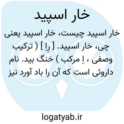 لغت نامه دهخدا خار اسپید. [ رِاِ ] ( ترکیب وصفی، اِ مرکب ) خنگ بید. نام داروئی است که آن را باد آورد نیز گویند. ( آنندراج ). رجوع بخار سپید و اسپیدخار شود.
