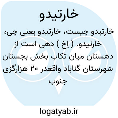 خارتیدو. ( اِخ ) دهی است از دهستان میان تکاب بخش بجستان شهرستان گناباد واقعدر 20 هزارگزی جنوب شوسه عمومی گناباد به بجستان. محلی است کوهستانی و گرمسیر و سکنه آن 280 تن میباشد و مذهب اهالی شیعه و زبانشان فارسی است. آب آنجا از قنات و محصولات آن غلات و ارزن و زیره میباشد. شغل اهالی زراعت و راه مالرو است و به اصطلاح محلی آنجا راخرتوران می گویند. ( از فرهنگ جغرافیائی ایران ج 9 ).