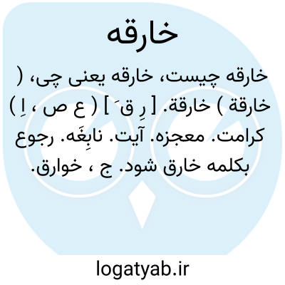 لغت نامه دهخدا ( خارقة ) خارقة. [ رِ ق َ ] ( ع ص، اِ ) کرامت. معجزه. آیت. نابِغَه. رجوع بکلمه خارق شود. ج، خوارق.