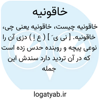 خاقونیه. [ نی ی َ ] ( ع اِ ) دزی آن را نوعی پیچه و روبنده حدس زده است که در آن تردید دارد سندش این جمله است. فتزینت باحسن الزینة و ارخت علی عینیها خاقونیه. ( از فرهنگ دزی ج 1 ص 346 ).
