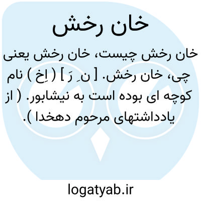 خان رخش. [ ن ِ رَ ] ( اِخ ) نام کوچه ای بوده است به نیشابور. ( از یادداشتهای مرحوم دهخدا ).