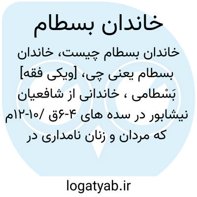 [ویکی فقه] بَسْطامی، خاندانی از شافعیان نیشابور در سده های ۴-۶ق /۱۰-۱۲م که مردان و زنان نامداری در دانش های دینی و فقه شافعی از آن برخاستند و حدود ۱۵۰ سال پیشوایی مذهبی - اجتماعی شافعیان آن دیار را داشتند.