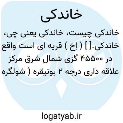خاندکی.[ ] ( اِخ ) قریه ای است واقع در 45500 گزی شمال شرق مرکز علاقه داری درجه 2 بونیقره ( شولگره ) مربوط به حکومت درجه 3 کشنده در حوزه حکومت کلان بلخ ولایت مزارشریف که بین خط 67 درجه و 12 دقیقه طول البلد شرقی وخط 36 درجه و 24 دقیقه و 33 ثانیه عرض البلد شمالی واقع میباشد. ( از قاموس جغرافیایی افغانستان ج 2 ).