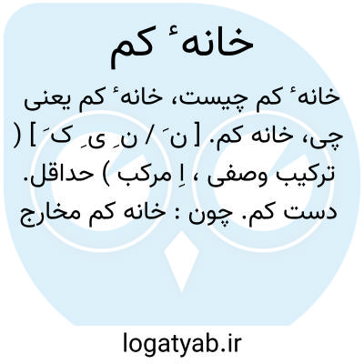 خانه کم. [ ن َ / ن ِ ی ِ ک َ ] ( ترکیب وصفی، اِ مرکب ) حداقل. دست کم. چون: خانه کم مخارج مسافرت شما چهل هزار تومان میشود.