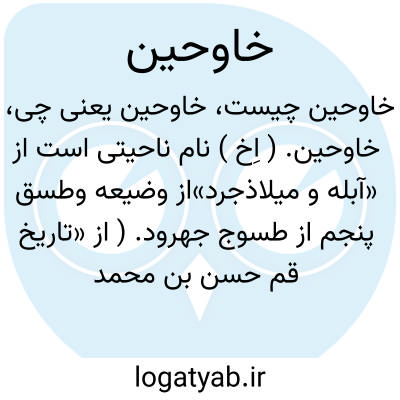 خاوحین. ( اِخ ) نام ناحیتی است از «آبله و میلاذجرد»از وضیعه وطسق پنجم از طسوج جهرود. ( از «تاریخ قم حسن بن محمد حسن قمی » ترجمه «حسن بن علی بن حسن بن عبدالملک قمی » به تصحیح و تحشیه سید جلال الدین طهرانی ).