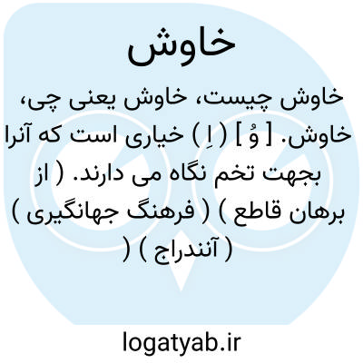 خاوش. [ وُ ] ( اِ ) خیاری است که آنرا بجهت تخم نگاه می دارند. ( از برهان قاطع ) ( فرهنگ جهانگیری ) ( آنندراج ) ( انجمن آرای ناصری ) ( فرهنگ اوبهی ).