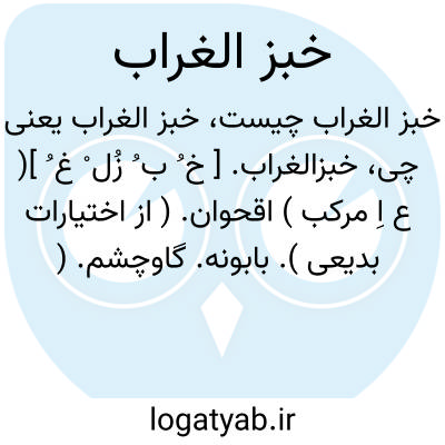 لغت نامه دهخدا خبزالغراب. [ خ ُ ب ُ زُل ْ غ ُ ]( ع اِ مرکب ) اقحوان. ( از اختیارات بدیعی ). بابونه. گاوچشم. ( یادداشت بخط مؤلف ). رجوع به «اقحوان » و «گاوچشم » و «بابونه » و تذکره ضریر انطاکی ص 140 شود.