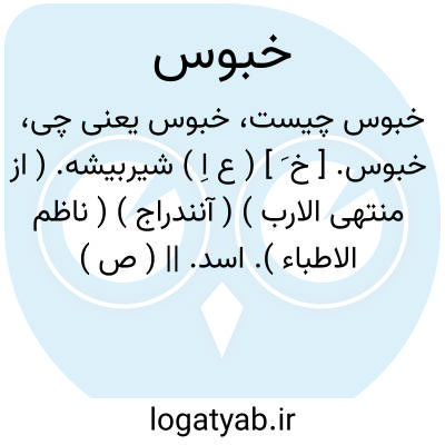 خبوس. [ خ َ ] ( ع اِ ) شیربیشه. ( از منتهی الارب ) ( آنندراج ) ( ناظم الاطباء ). اسد. || ( ص ) ستمکار. ( از منتهی الارب ) ( ناظم الاطباء ). ظالم. ظلم کننده.