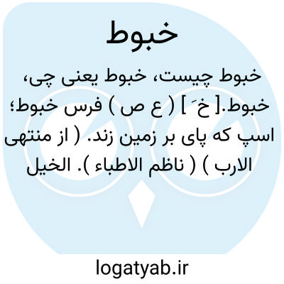 خبوط.[ خ َ ] ( ع ص ) فرس خبوط؛ اسپ که پای بر زمین زند. ( از منتهی الارب ) ( ناظم الاطباء ). الخیل الذی یخبط الارض برجله. ( از اقرب الموارد ) ( متن اللغة ) ( معجم الوسیط ).