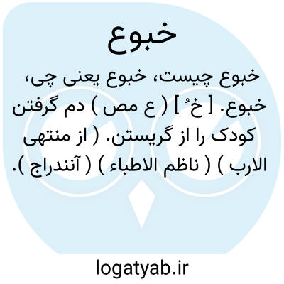 خبوع. [ خ ُ ] ( ع مص ) دم گرفتن کودک را از گریستن. ( از منتهی الارب ) ( ناظم الاطباء ) ( آنندراج ). خبعالصبی خبوعاً؛ انقطع نفسه و فحم من البکاء. ( از اقرب الموارد ) ( متن اللغة ) ( معجم الوسیط ) ( تاج العروس ).