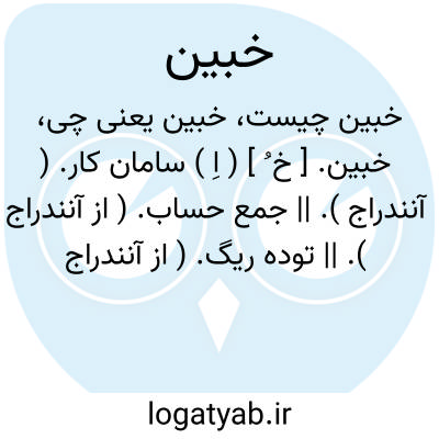 خبین. [ خ ُ ] ( اِ ) سامان کار. ( آنندراج ). || جمع حساب. ( از آنندراج ). || توده ریگ. ( از آنندراج ). رجوع به «خبیر» و «خبیوره » و «خبیوه » شود. || طبق چوبین. ( از برهان قاطع ). طبقی بود ازچوب گز یا بید بافته. ( از فرهنگ اوبهی ). مؤلف لغتنامه را نظر برآن است که این کلمه مصحف «چبین » است.
