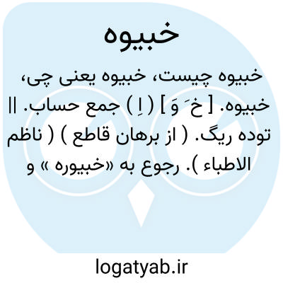 خبیوه. [ خ َ وَ ] ( اِ ) جمع حساب. || توده ریگ. ( از برهان قاطع ) ( ناظم الاطباء ). رجوع به «خبیوره » و «خبیره » شود. || سامان کار. ( از ناظم الاطباء ).