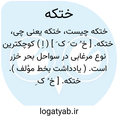 ختکه. [ خ ُ ت َ ک َ ] ( اِ ) کوچکترین نوع مرغابی در سواحل بحر خزر است. ( یادداشت بخط مؤلف ).