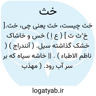 خث.[ خ ُث ث ] ( ع اِ ) خس و خاشاک خشک گذاشته سیل. ( آنندراج ) ( ناظم الاطباء ). || خاشه سیاه که بر سر آب رود. ( مهذب الاسماء ). || جامه غوک خشک دیرینه. ( آنندراج ). جل وزغ خشک دیرینه. ( ناظم الاطباء ). سرگین گاو که برجای اندایند. ( مهذب الاسماء )