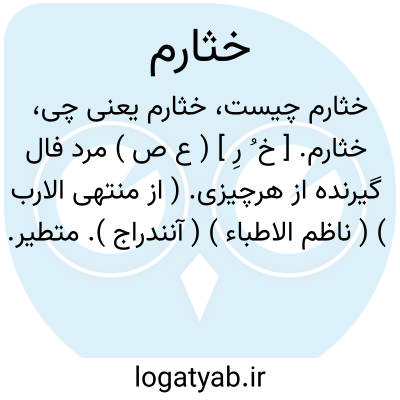 خثارم. [ خ ُ رِ ] ( ع ص ) مرد فال گیرنده از هرچیزی. ( از منتهی الارب ) ( ناظم الاطباء ) ( آنندراج ). متطیر. ( معجم الوسیط ) ( متن اللغة ): امضی فی ذلک الطریق اذا صدعنه الخثارم. ( معجم الوسیط ). || سطبر لب. ( از منتهی الارب ) ( ناظم الاطباء ) ( آنندراج ). الغلیظ الشفه. ( از اقرب الموارد ) ( متن اللغة ) ( معجم الوسیط ).