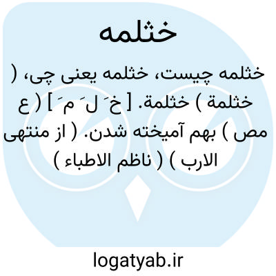 ( خثلمة ) خثلمة. [ خ َ ل َ م َ ] ( ع مص ) بهم آمیخته شدن. ( از منتهی الارب ) ( ناظم الاطباء ) اختلاط. ( از متن اللغة ) ( اقرب الموارد ). || پنهان گرفتن چیزی را. ( از منتهی الارب ) ( متن اللغة ) ( اقرب الموارد ).