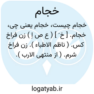 خجام. [ خ َ ] ( ع ص اِ ) زن فراخ کس. ( ناظم الاطباء ). زن فراخ شرم. ( از منتهی الارب ).