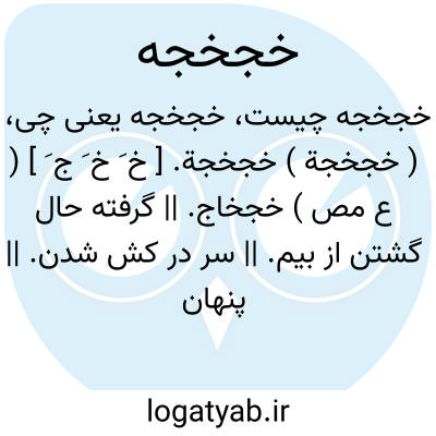 ( خجخجة ) خجخجة. [ خ َ خ َ ج َ ] ( ع مص ) خجخاج. || گرفته حال گشتن از بیم. || سر در کش شدن. || پنهان گردیدن. || باد سخت جستن. || بزودی نشانیدن شتر را. || نهان داشتن اندیشه خویش. ( از منتهی الارب ). || گاییدن. ( از منتهی الارب ).نکاح. ( از متن اللغة ).