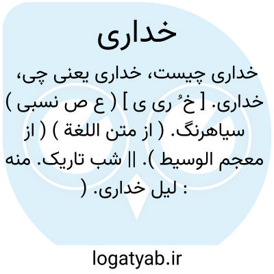 خداری. [ خ ُ ری ی ] ( ع ص نسبی ) سیاهرنگ. ( از متن اللغة ) ( از معجم الوسیط ). || شب تاریک. منه: لیل خداری. ( از متن اللغة ). || اسب سیاه. ( از منتهی الارب ) ( از ناظم الاطباء ). || عقاب سیاه. ( مهذب الاسماء ). || موی سیاه. ( از منتهی الارب ) ( از ناظم الاطباء ). || شتر سخت سیاه. منه: بعیر خداری. ( از منتهی الارب ) ( از معجم الوسیط ) ( از متن اللغة ).