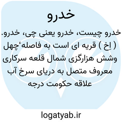 خدرو. ( اِخ ) قریه ای است به فاصله ٔچهل وشش هزارگزی شمال قلعه سرکاری معروف متصل به دریای سرخ آب علاقه حکومت درجه دو ارغستان ولایت قندهار افغانستان بمختصات جغرافیایی زیر: طول شرقی 67 درجه و28 دقیقه و 5 ثانیه و عرض شمالی 31 درجه و 30 دقیقه و 24 ثانیه. ( از قاموس جغرافیایی افغانستان ج 2 ).