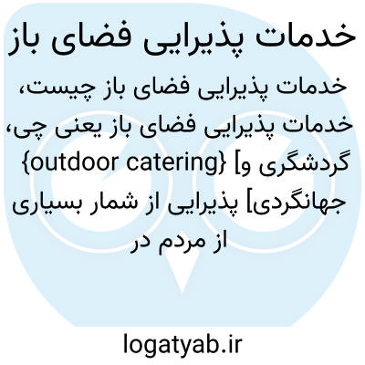 {outdoor catering} [گردشگری و جهانگردی] پذیرایی از شمار بسیاری از مردم در فضای باز در مناسبت هایی مانند رویدادهای ورزشی و نمایشگاه ها