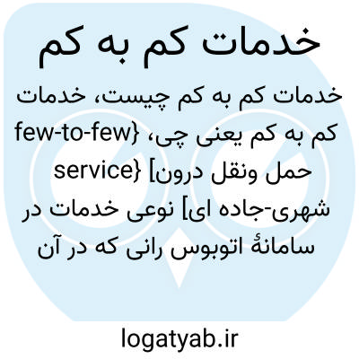 {few-to-few service} [حمل ونقل درون شهری-جاده ای] نوعی خدمات در سامانۀ اتوبوس رانی که در آن مسافران را از تعداد کمی ایستگاه مبدأ به تعداد کمی ایستگاه مقصد انتقال می دهند