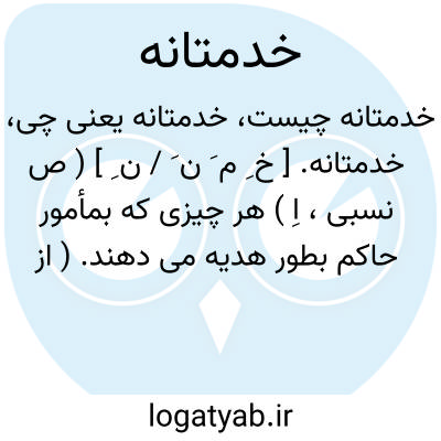 خدمتانه. [ خ ِ م َ ن َ / ن ِ ] ( ص نسبی، اِ ) هر چیزی که بمأمور حاکم بطور هدیه می دهند. ( از ناظم الاطباء ). قُلﱡق. قولق. ( یادداشت بخط مؤلف ) پیشکشی. نعل بها.