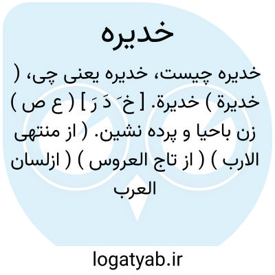 ( خدیرة ) خدیرة. [ خ َ دَ رَ ] ( ع ص ) زن باحیا و پرده نشین. ( از منتهی الارب ) ( از تاج العروس ) ( ازلسان العرب ) ( از قاموس ).