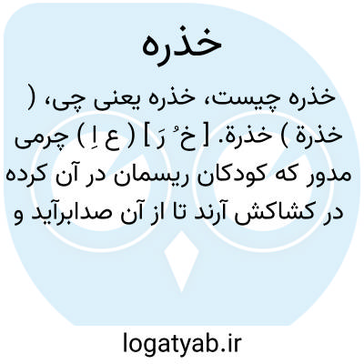 ( خذرة ) خذرة. [ خ ُ رَ ] ( ع اِ ) چرمی مدور که کودکان ریسمان در آن کرده در کشاکش آرند تا از آن صدابرآید و بفارسی بادفره گویند. ( از منتهی الارب ) ( از ناظم الاطباء ) ( از آنندراج ) ( فرهنگ شعوری ج 1 ص 390 ).