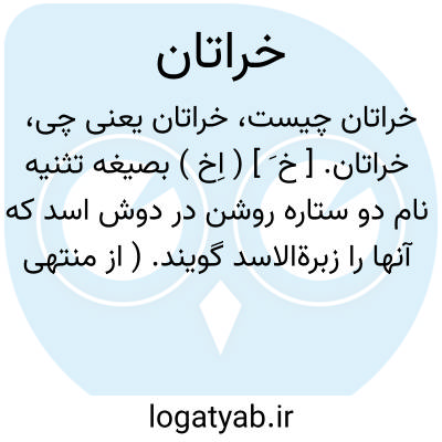 خراتان. [ خ َ ] ( اِخ ) بصیغه تثنیه نام دو ستاره روشن در دوش اسد که آنها را زبرةالاسد گویند. ( از منتهی الارب ) ( از ناظم الاطباء ).