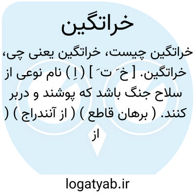 خراتگین. [ خ َ ت َ ] ( اِ ) نام نوعی از سلاح جنگ باشد که پوشند و دربر کنند. ( برهان قاطع ) ( از آنندراج ) ( از انجمن آرای ناصری ). در آنندراج و انجمن آرای ناصری آمده است: بقول جهانگیری آنرا خرپشته نیزگویند و بقول صاحب فرهنگ شعوری خراتکین آمده است.