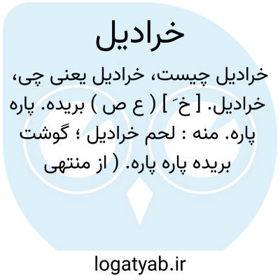 خرادیل. [ خ َ ] ( ع ص ) بریده. پاره پاره. منه: لحم خرادیل؛ گوشت بریده پاره پاره. ( از منتهی الارب ):