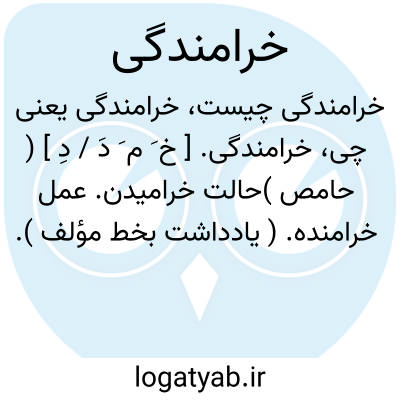 لغت نامه دهخدا خرامندگی. [ خ َ م َ دَ / دِ ] ( حامص )حالت خرامیدن. عمل خرامنده. ( یادداشت بخط مؤلف ).