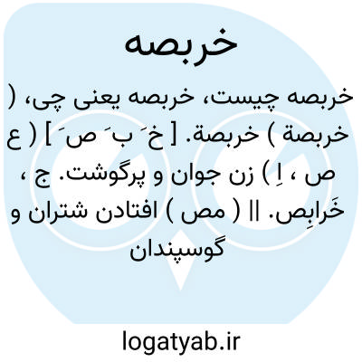( خربصة ) خربصة. [ خ َ ب َ ص َ ] ( ع ص، اِ ) زن جوان و پرگوشت. ج، خَرابِص. || ( مص ) افتادن شتران و گوسپندان در چریدن و خوب چریدن آنها. ( منتهی الارب ) ( ناظم الاطباء ). || مال را گرفتن و بردن. || تمییز دادن بعض اشیاء را از بعض دیگر. ( منتهی الارب ) ( از تاج العروس ) ( از لسان العرب ).