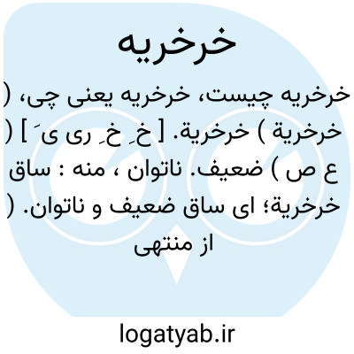 ( خرخریة ) خرخریة. [ خ ِ خ ِ ری ی َ ] ( ع ص ) ضعیف. ناتوان، منه: ساق خرخریة؛ ای ساق ضعیف و ناتوان. ( از منتهی الارب ).