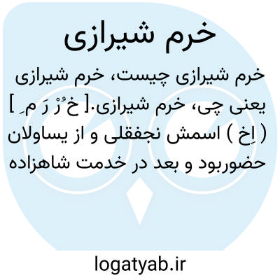 خرم شیرازی.[ خ ُرْ رَ م ِ ] ( اِخ ) اسمش نجفقلی و از یساولان حضوربود و بعد در خدمت شاهزاده صاحبقران میرزا رتبتی حاصل کرد. او در غزل سرایی طبعش سلاستی گرفت و چنانکه رسم تربیت خاقان مغفور بود بهر هفته غزلی تازه بحضور بردی و جایزه یافتی و خشنود بازگشتی. بالجمله از موزونان غزل سرای معاصرین بوده قرب سه هزار بیت دیوان جمع کرده. این بیت ااز اوست: بنگر بزخمهای دل بیقرار ما