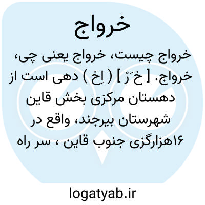 خرواج. [ خ َرْ ] ( اِخ ) دهی است از دهستان مرکزی بخش قاین شهرستان بیرجند، واقع در 16هزارگزی جنوب قاین، سر راه شوسه عمومی قاین به بیرجند. کوهستانی، معتدل. آب از قنات. محصول آن غلات، زعفران. شغل اهالی زراعت و مالداری و قالیچه و کرباس بافی. راه اتومبیل رو. ( از فرهنگ جغرافیائی ایران ج 9 ).