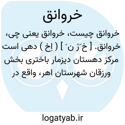 خروانق. [ خ َرْ ن َ ] ( اِخ ) دهی است مرکز دهستان دیزمار باختری بخش ورزقان شهرستان اهر، واقع در 45هزارگزی شمال باختری ورزقان و 35هزارگزی ارابه رو تبریز به اهر. کوهستانی، معتدل مایل بگرمی. آب از چشمه و رودخانه ورزقان. محصول آن غلات، سردرختی، تنباکو و برنج. شغل اهالی زراعت و گله داری. صنایع دستی گلیم و جاجیم بافی. راه آن مالرو است. ( از فرهنگ جغرافیائی ایران ج 4 ).