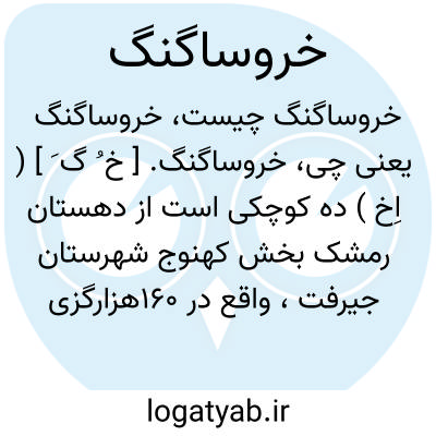 خروساگنگ. [ خ ُ گ َ ] ( اِخ ) ده کوچکی است از دهستان رمشک بخش کهنوج شهرستان جیرفت، واقع در 160هزارگزی جنوب خاوری کهنوج، سر راه مالرو مشک گابریک. ( از فرهنگ جغرافیائی ایران ج 8 ).