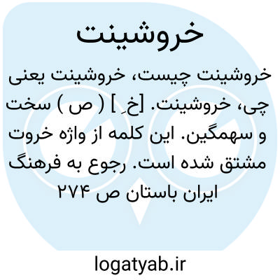 خروشینت. [خ ِ ] ( ص ) سخت و سهمگین. این کلمه از واژه خروت مشتق شده است. رجوع به فرهنگ ایران باستان ص 274 شود.