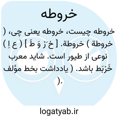 ( خروطة ) خروطة. [ خ َرْ وَ طَ ] ( ع اِ ) نوعی از طیور است. شاید معرب خَرْبَط باشد. ( یادداشت بخط مؤلف ).