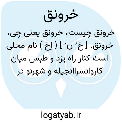 خرونق. [ خ ُ ن َ ] ( اِخ ) نام محلی است کنار راه یزد و طبس میان کاروانسراانجیله و شهرنو در هفتادودوهزارمتری یزد. ( یادداشت بخط مؤلف ).