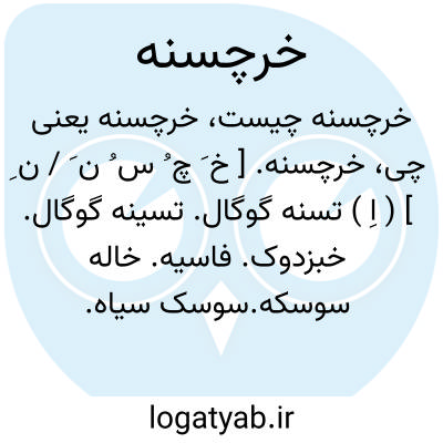 خرچسنه. [ خ َ چ ُ س ُ ن َ / ن ِ ] ( اِ ) تسنه گوگال. تسینه گوگال. خبزدوک. فاسیه. خاله سوسکه.سوسک سیاه. خاله چسونه. حشره سیاه به اندازه مغز بادام که چون دست بدو برند بویی کریه از وی برخیزد. حیوانی است که بسیار تِس دهد. ( یادداشت بخط مؤلف ).
